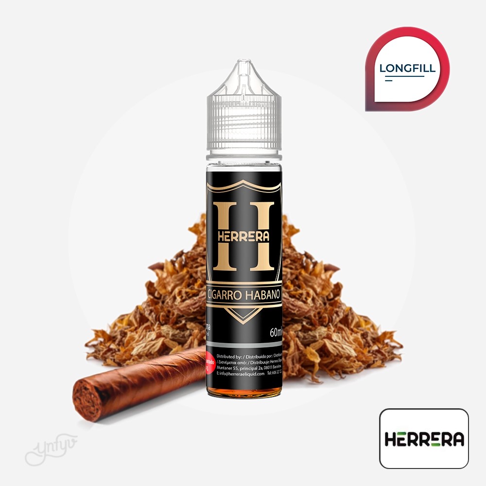 Un longfill es un concentrado en formato para completar con base y, si quieres, nicotina. Este producto de Herrera está pensado para recrear el sabor de la envoltura habano y preparar tu líquido final ajustando la base y la nicotina a tu gusto.
